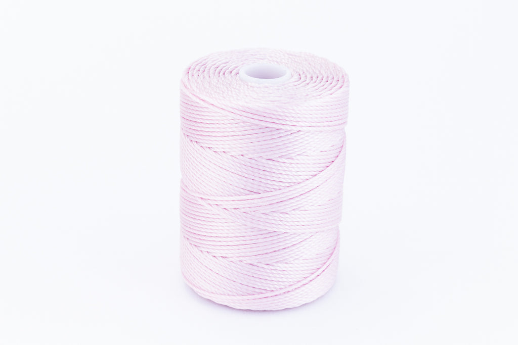 Petal pink heavy weight bonded nylon beading cord for a variety of projects including kumihimo braiding and macrame.