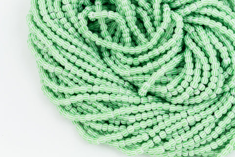 11/0 Opaque White/Green Double Stripe Czech Seed Bead (5 Gm, Hank, 1/4 Kilo) #CSG190