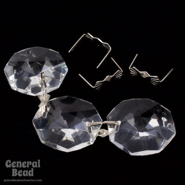 Silver tone bow tie or papillon clip for connecting chandelier prisms.