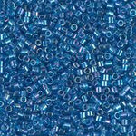 Size 10/0 transparent iridescent dark aqua cylinder seed bead.