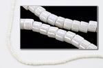 Size 10/0 opaque alabaster luster cylinder seed bead.