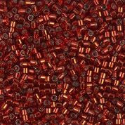 Size 10/0 silver lined dyed dark red cylinder seed bead.