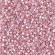 Size 10/0 silver lined dyed opal light rose cylinder seed bead.
