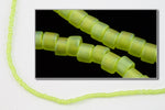 Size 10/0 matte iridescent chartreuse cylinder seed bead.