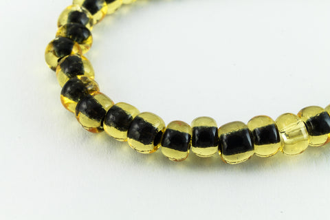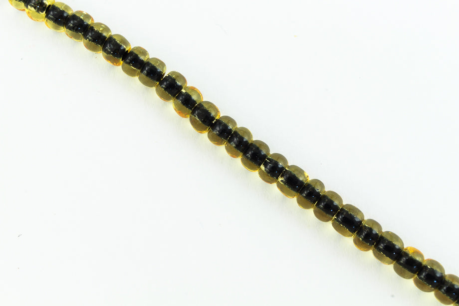 Size 6 jet lined light topaz seed beads.