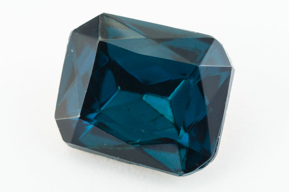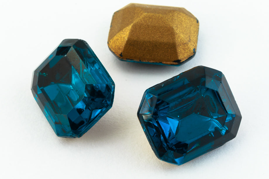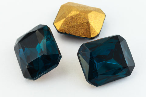 10mm x 12mm Montana sapphire faceted long octagon point back with gold foiling.