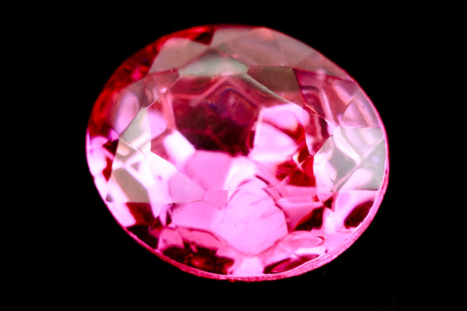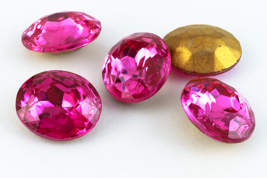 10mm x 12mm rose faceted oval point back with gold foiling.