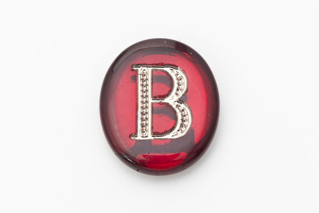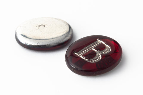 Vintage 10mm x 12mm Ruby/Silver "B" Letter Cabochon #XS110-B-2