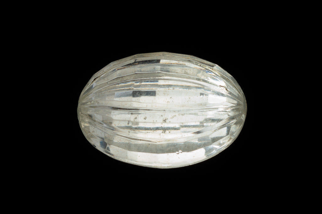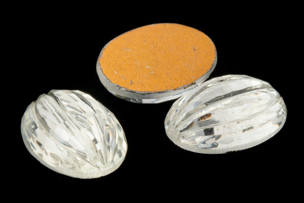 9.92mm x 13.92mm crystal clear oval with faceted ridges running lengthwise. Gold foiled flat back.Made in the Czech Republic circa 1970's. Sold individually.