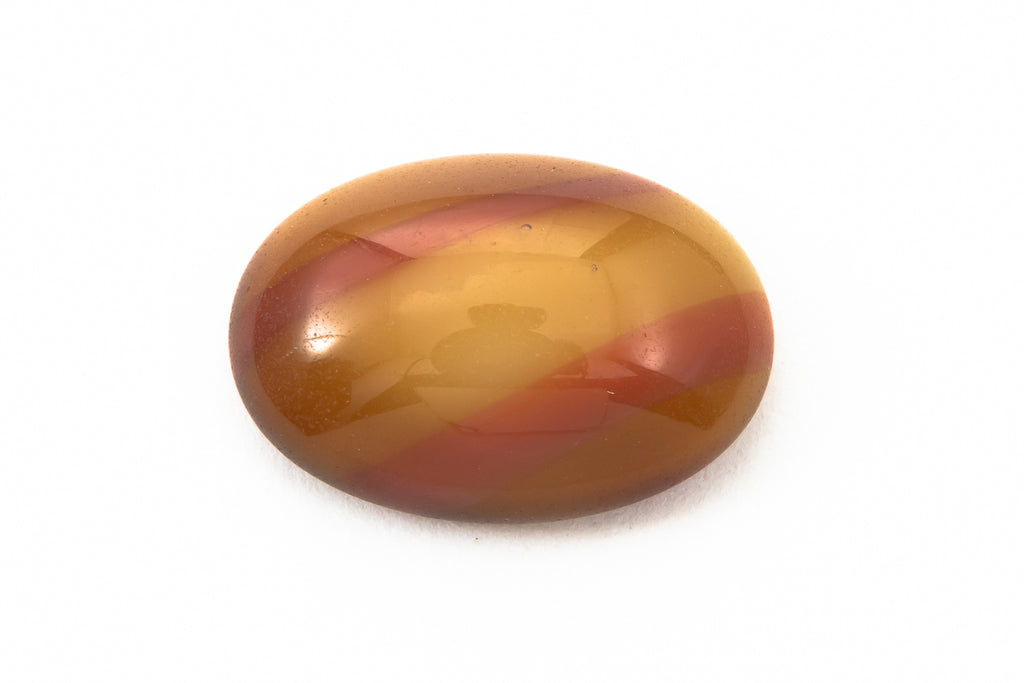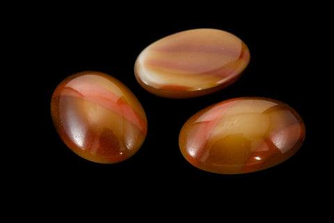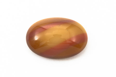 9.79mm x 13.97mm oval flat back with diagonal bands of terracotta and ochre. Made in Germany circa 1950's.