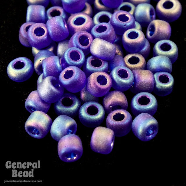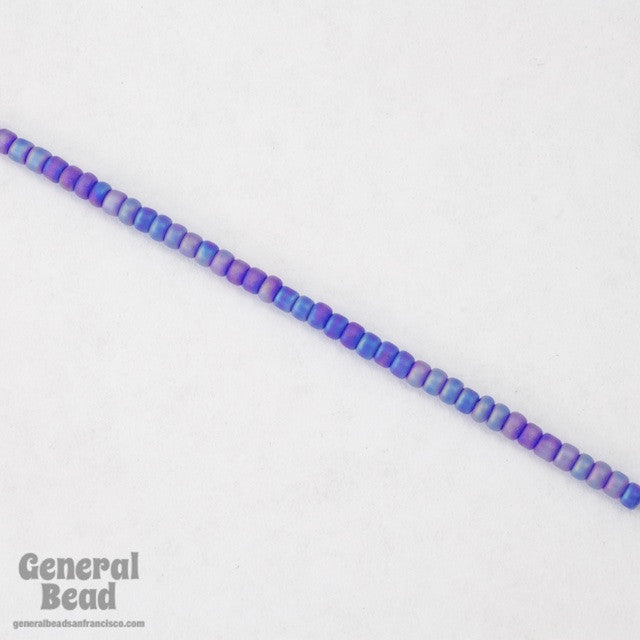 11/0 matte cobalt seed bead with iridescent sheen.