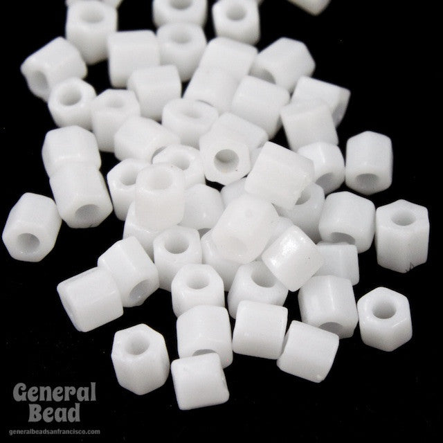 Size 11/0 opaque white two-cut hex seed bead.