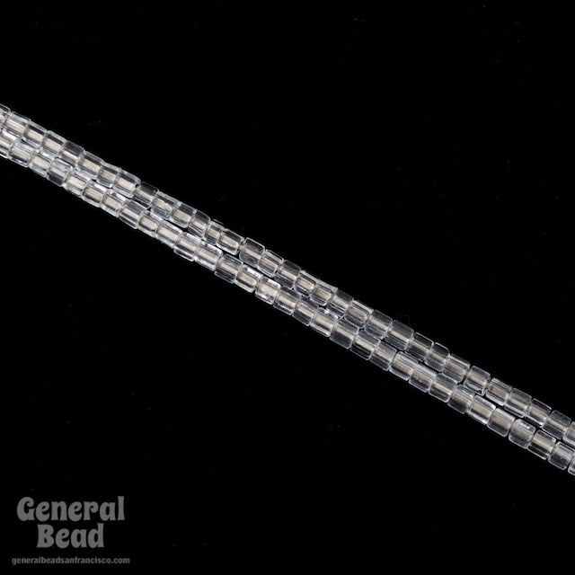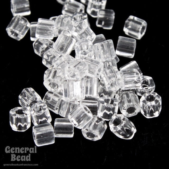 Size 11/0 transparent crystal two-cut hex seed bead.