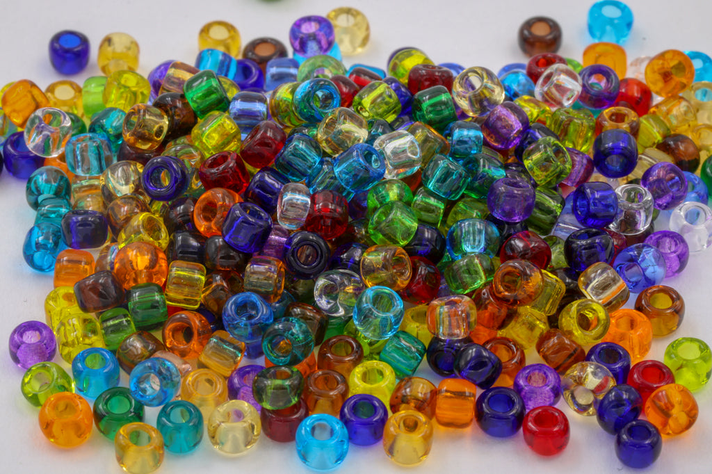 Size 11 multi color mix of transparent seed beads.