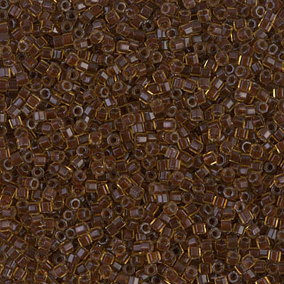 Size 11/0 dark topaz lined amber cylinder seed bead.