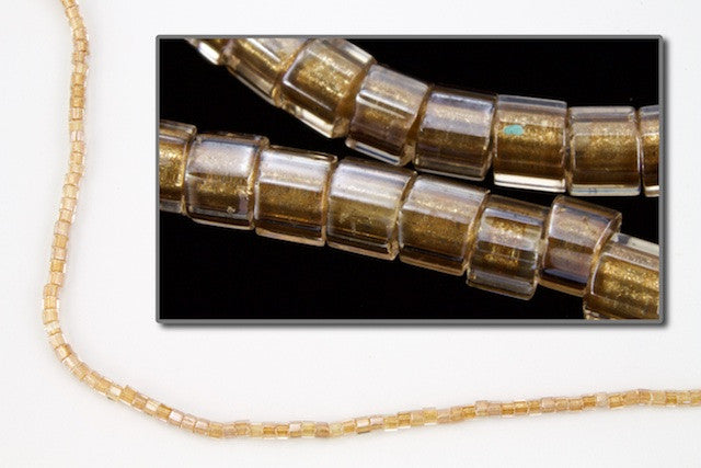 Size 11/0 shimmering sand lined crystal hex cut cylinder seed bead.