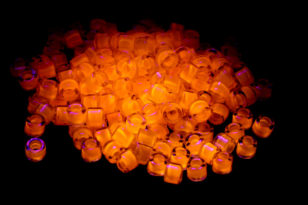 Size 11/0 luminous creamsicle cylinder seed bead.