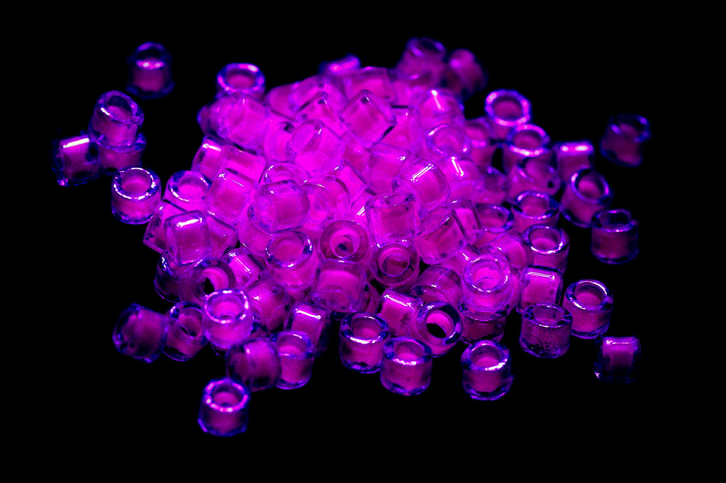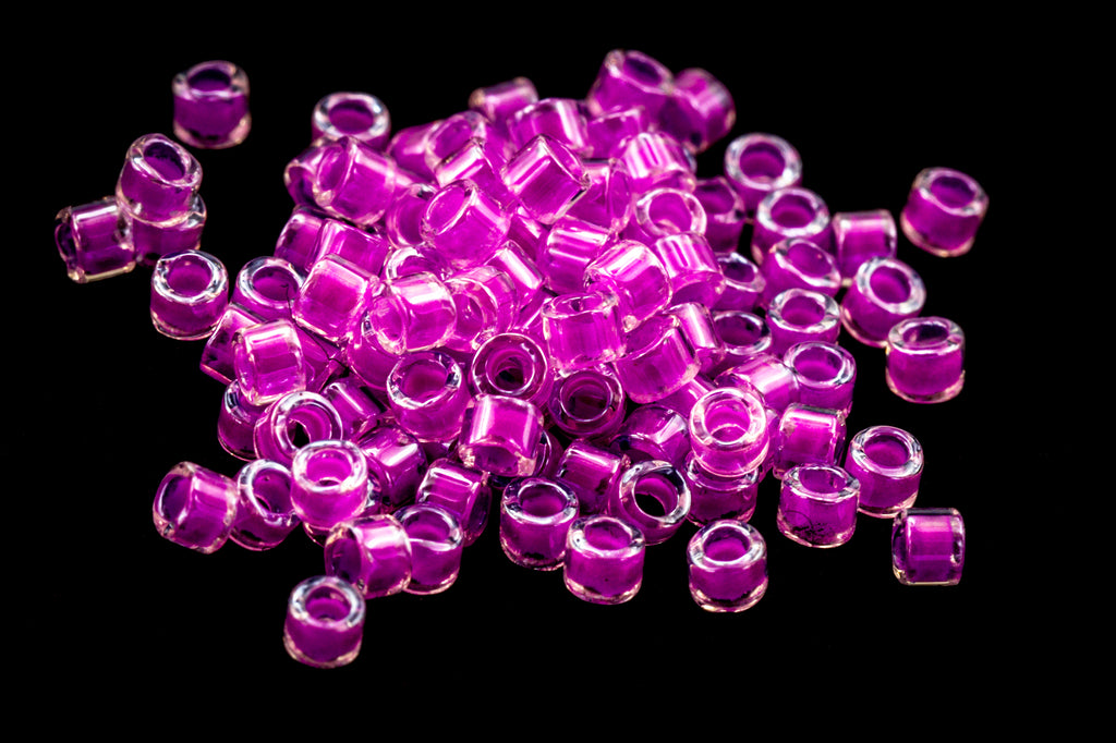 Size 11/0 luminous plum crazy cylinder seed bead.
