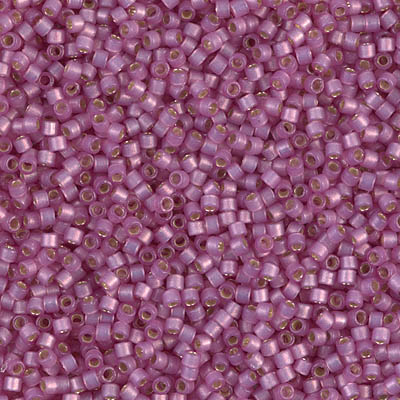 Size 11/0 Duracoat semi-frosted silver lined dyed orchid cylinder seed bead.