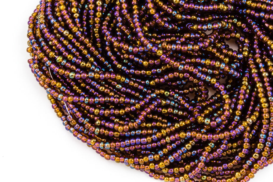 Size 4 transparent root beer iris seed beads.
