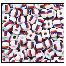 7/0 Opaque White with Red/Blue Stripe Czech Seed Bead (1/2 Kilo) Preciosa #03370