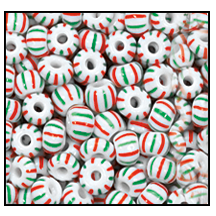 7/0 Opaque Red/White/Green Stripe Czech Seed Bead (1/2 Kilo) Preciosa #03951