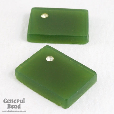 Vintage 12mm x 16mm Moss Green Rectangle Cabochon with Rhinestone #XS108-A