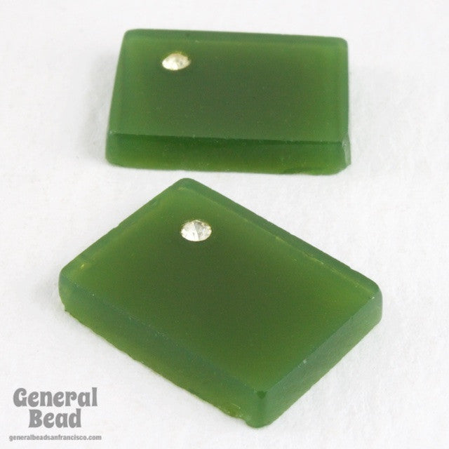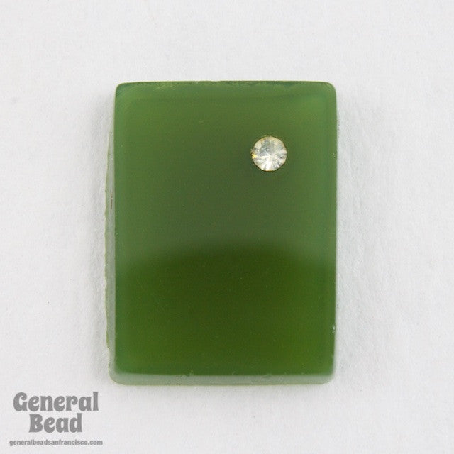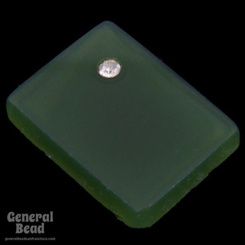 11.94mm x 15.84mm moss green flat rectangle flat back with crystal rhinestone in one corner.