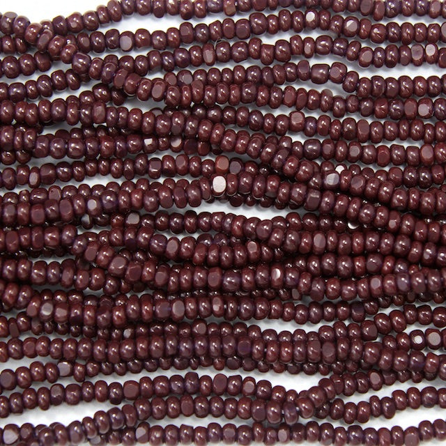 Size 11/0 Charlotte cut opaque charcoal brown glass seed beads.