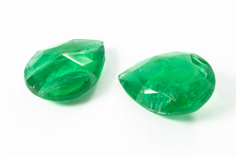 Vintage 13mm x 18mm Unfoiled Emerald Faceted Teardrop Point Back #XS189-B