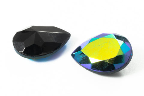 Vintage 13mm x 18mm Jet AB Faceted Teardrop Point Back #XS189-E