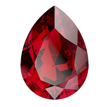 Swarovski article 4320.Pear fancy stone with flat center surrounded by precise facets.Cushioned back adds depth.Siam with silver foil to enhance sparkle.Made in Austria using lead free Advanced Crystal.