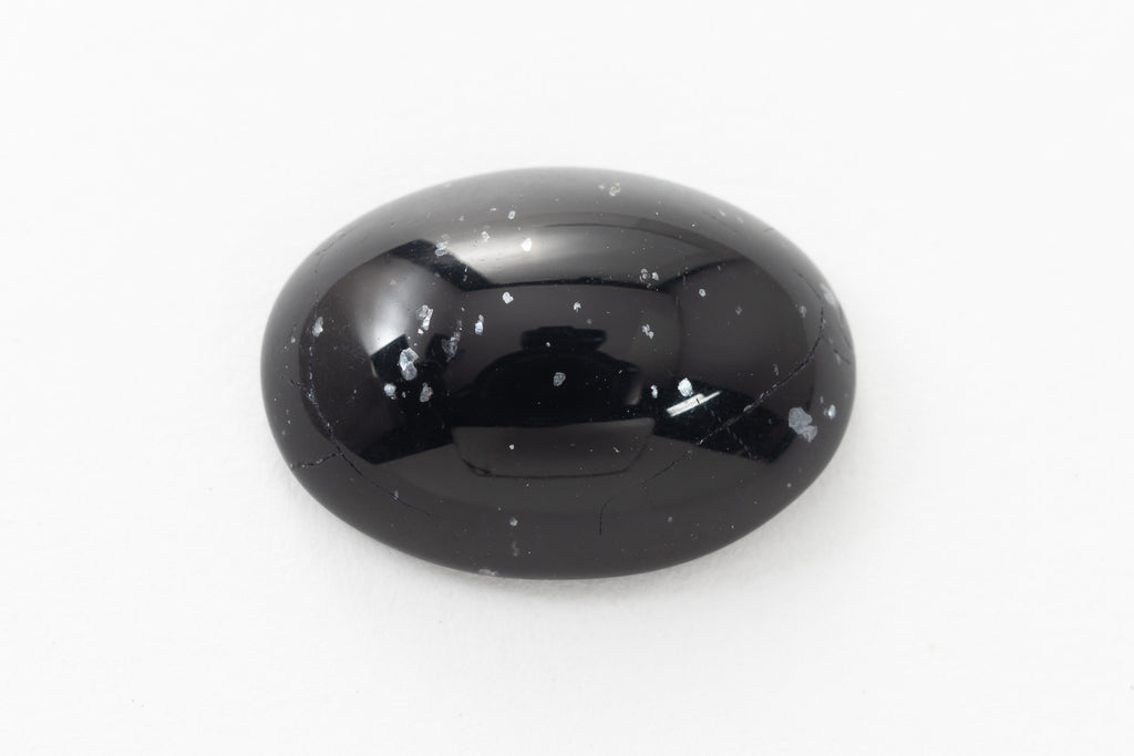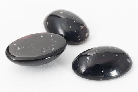 13.11mm x 18.03mm jet black oval flat back with specks of silver.