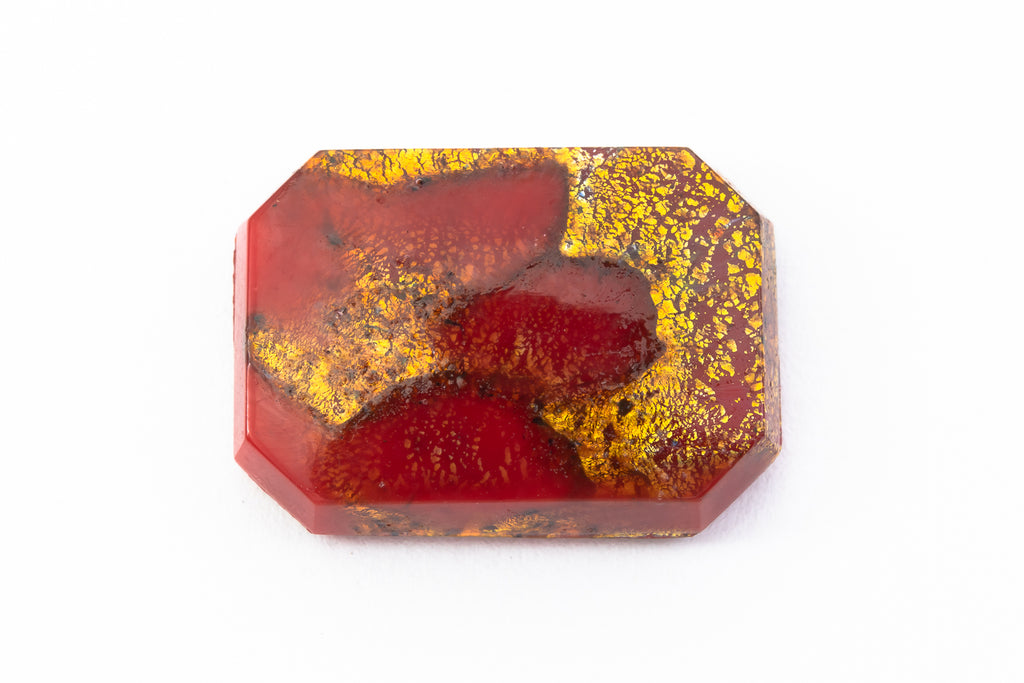 Vintage glass cabochon.13.04mm x 18.15mm flat back octagon with smooth flat top.