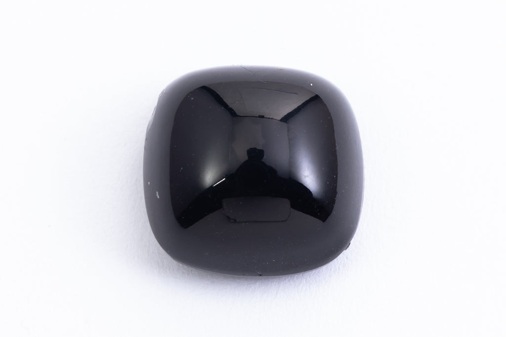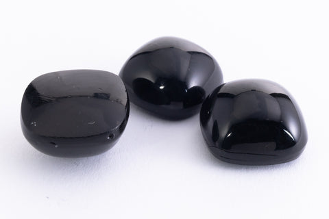 Vintage glass cabochon. 14.05mm x 14.19mm opaque black domed square flat back with rounded corners. Made in Germany circa 1920's. Sold individually.