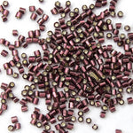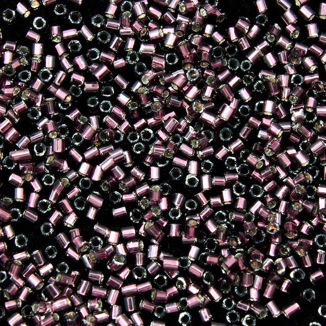 1mm x 1.4mm size 15/0 silver lined dark amethyst hex seed bead.