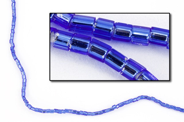 1mm x 1.4mm size 15/0 silver lined sapphire hex seed bead.