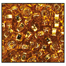 Size 6 silver lined deep gold glass seed beads.