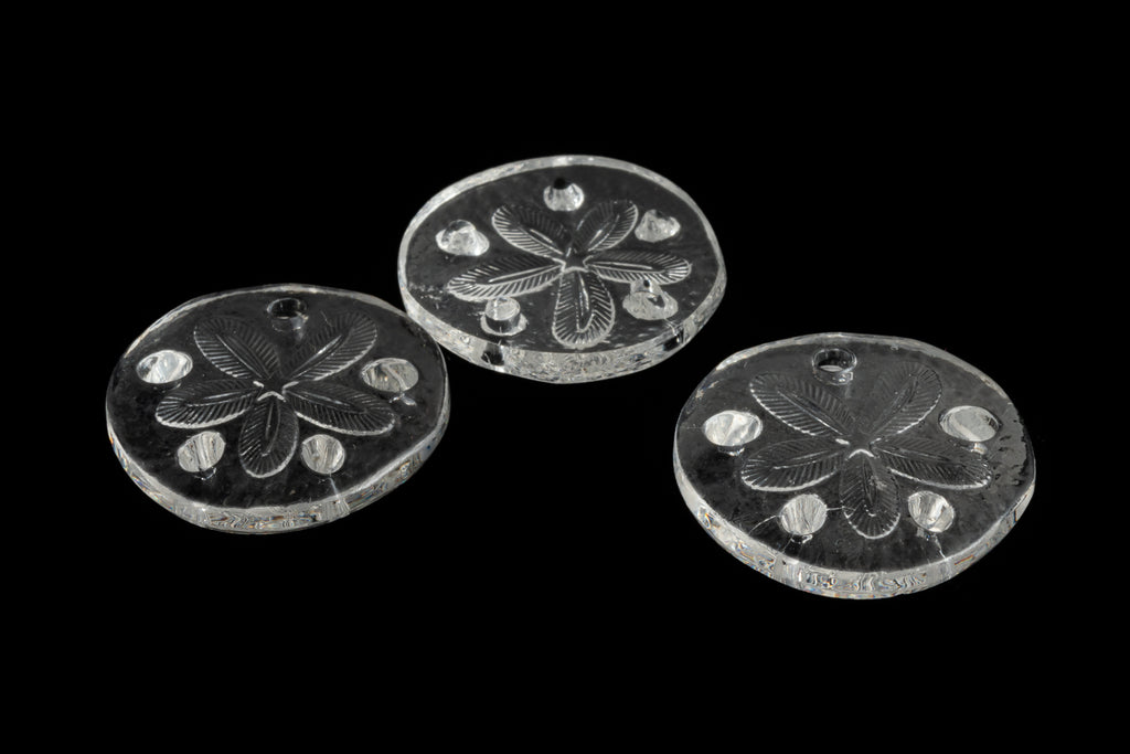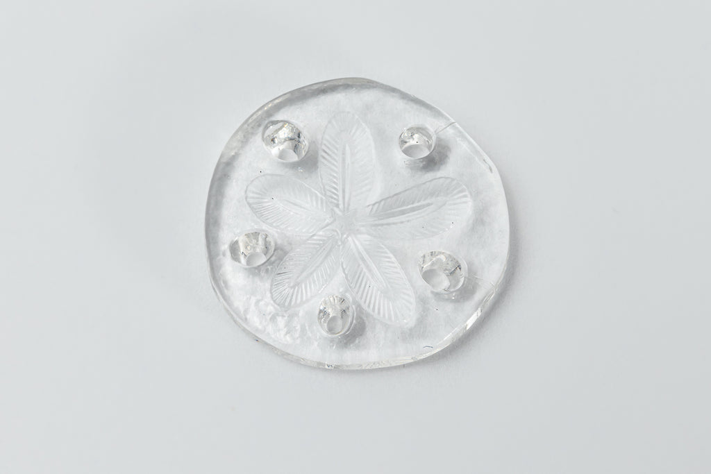 18.5mm crystal clear round flat sand dollar with 5 holes.