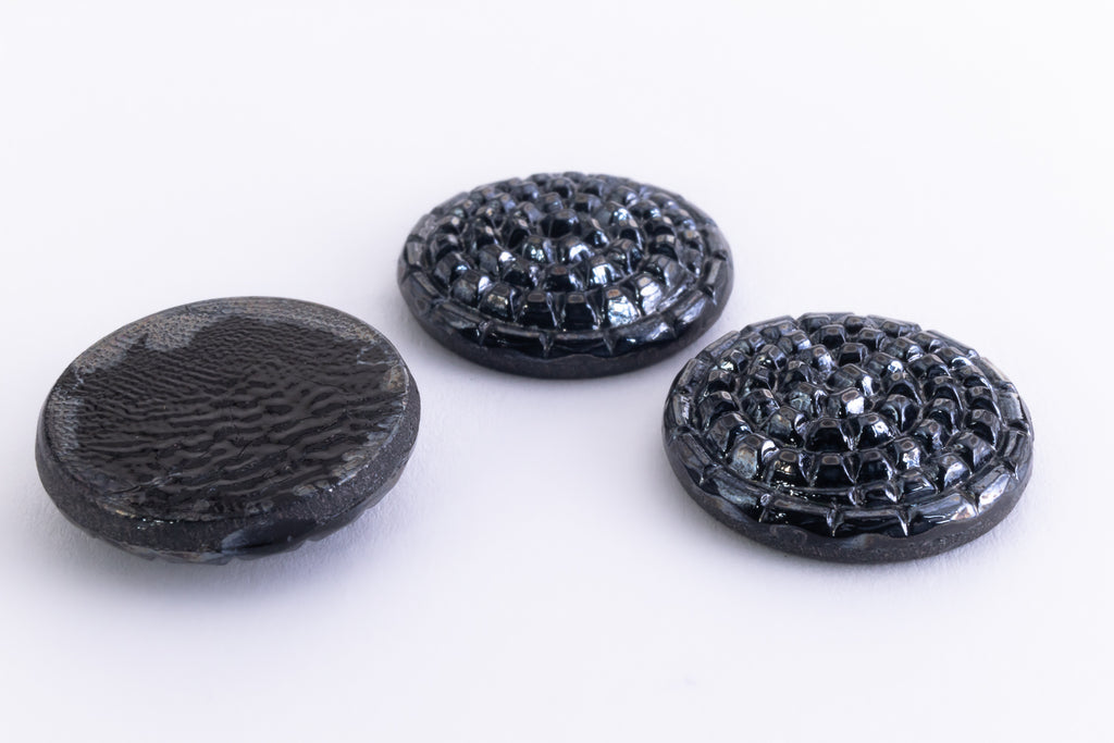 Luster opaque black with flat back.