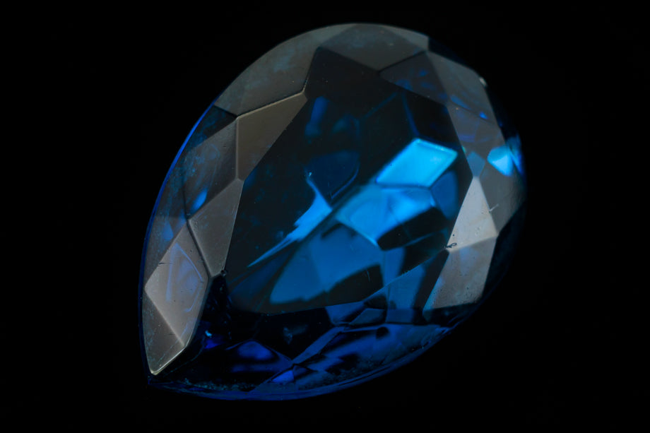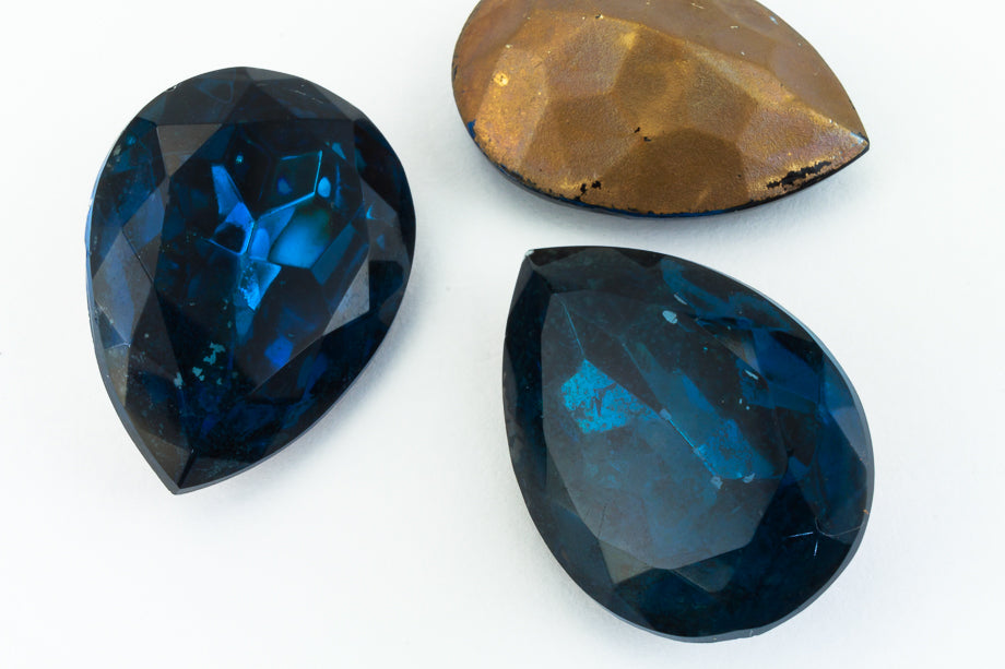 18mm x 25mm Montana faceted teardrop point back with gold foiling.