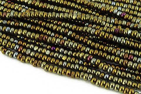 Size 11/0 Charlotte cut metallic brown iris glass seed beads.