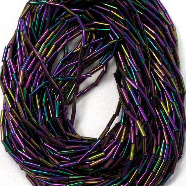 1.3mm x 4mm metallic purple iris glass bead.
