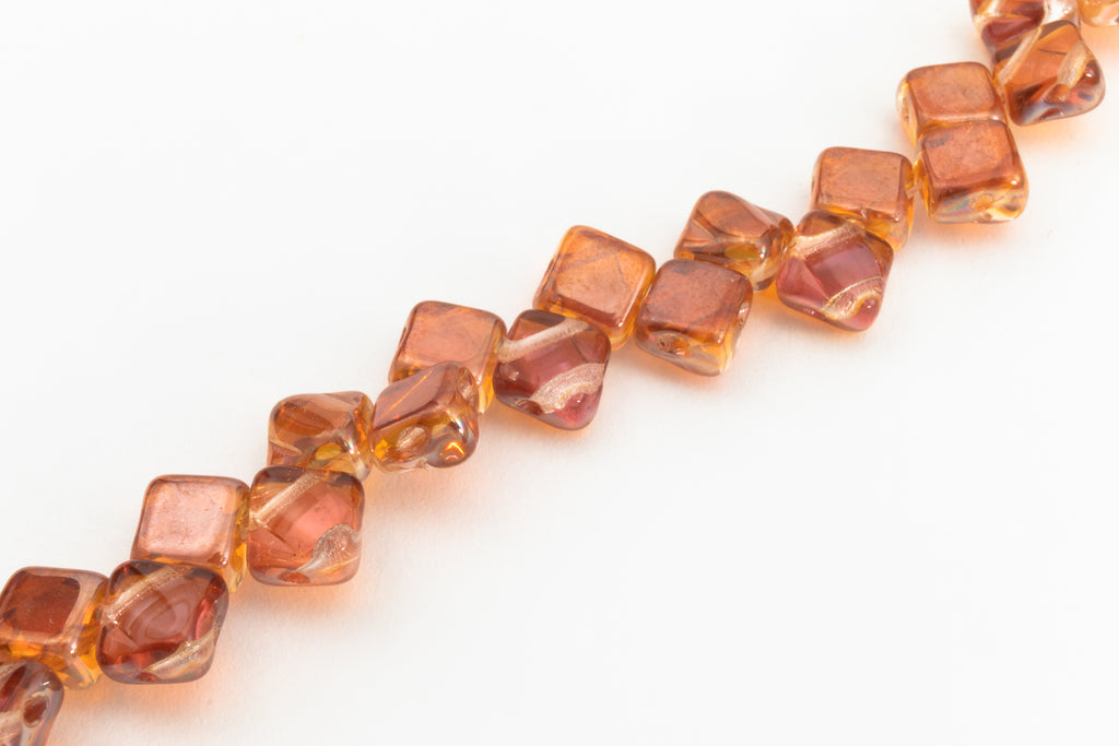 Silky beads 6mm square shape beads with 2 diagonally drilled parallel holes.
