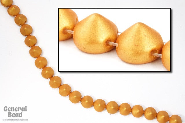 8mm matte metallic copper gold cone bead with parallel sideways holes and flat back.