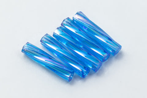 Size 4 twisted bugle in transparent sapphire aurora borealis.