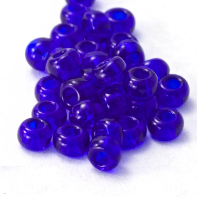 Size 9 transparent cobalt seed bead.