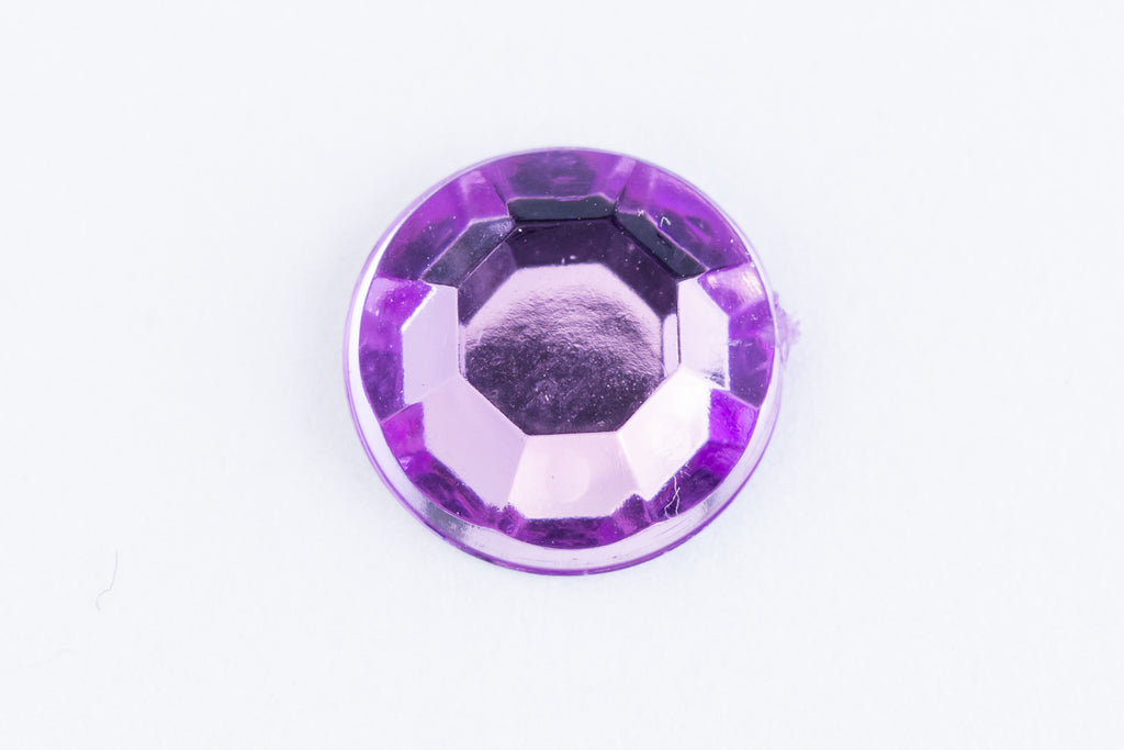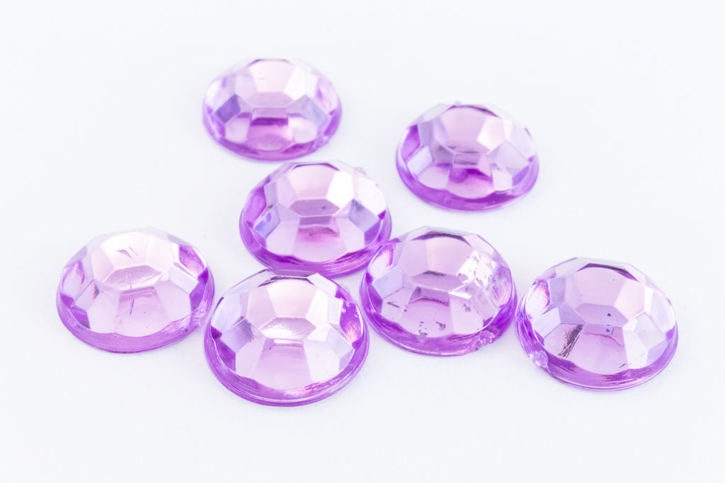 Acrylic faceted round light amethyst rhinestone with flat foiled back.