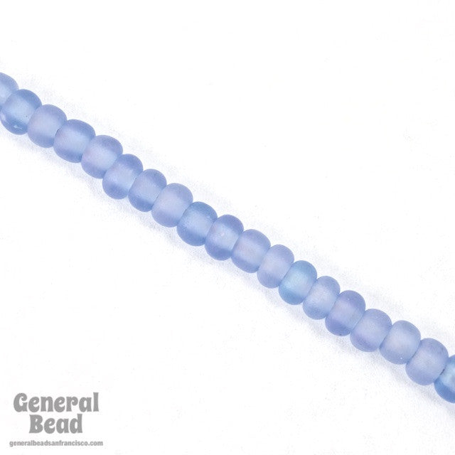 Size 6 matte transparent matte iridescent light sapphire seed beads.