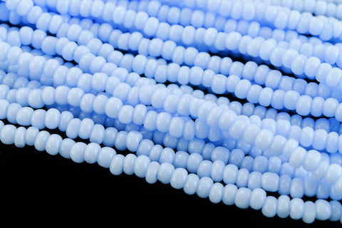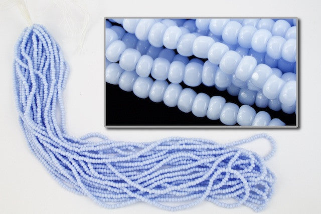 Size 13/0 Charlotte cut opaque powder blue glass seed beads.
